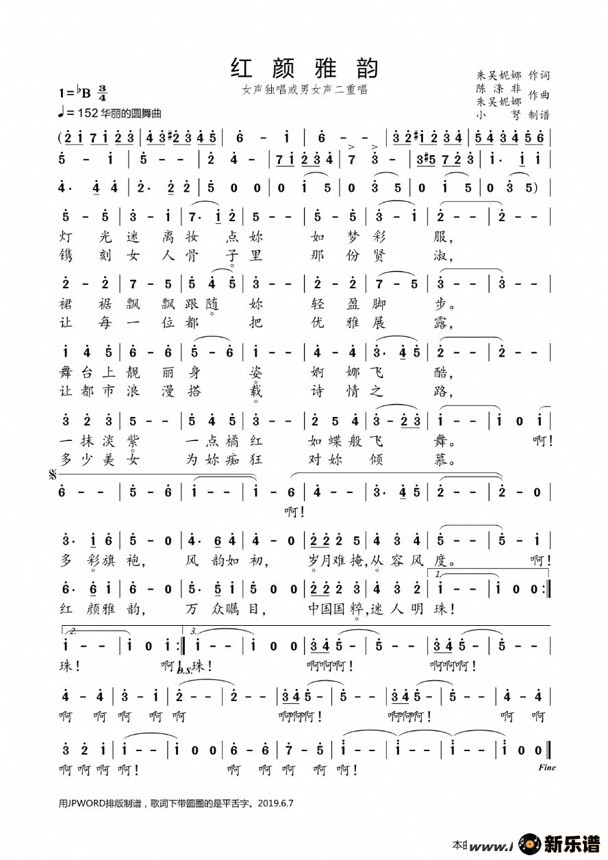 王馨演唱的红颜雅韵歌词,红颜雅韵最新曲谱.