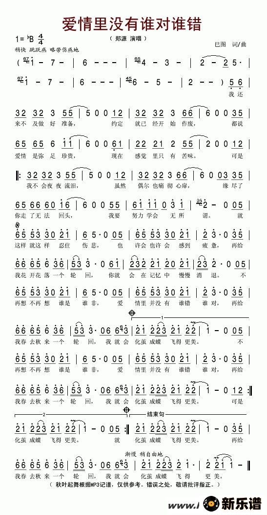 郑源演唱的爱情里没有谁对谁错歌词,爱情里没有谁对谁错最新曲谱.