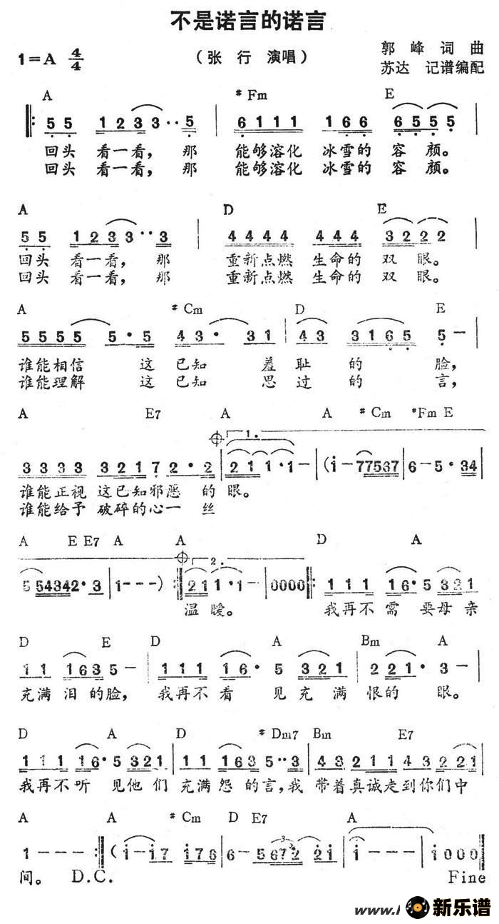 不是诺言的诺言张行 张行演唱的不是诺言的诺言歌词,不是诺言的诺言最新曲谱. 回头看一看,那能够溶化冰雪的容颜。回头看一看,那重新点燃生命的双眼。谁能相信这已知羞耻的脸,谁能正视这已知邪恶的眼。回头看一看,那能够溶化冰雪的容颜。回头看一看,那重新点燃生命的双眼。谁能理解这已知思过的言,谁能给予破碎的心一丝温暖。我再不需要母亲充满泪的脸,我再不看见充满恨的眼。我再不听见他们充满怨的言,我带着真诚走到你们中间。回头看一看,那能够溶化冰雪的容颜。回头看一看,那重新点燃生命的双眼。谁能理解这已知思过的言,谁能给予破碎的心一丝温暖。我再不需要母亲充满泪的脸,我再不看见充满恨的眼。我再不听见他们充满怨的言,我带着真诚走到你们中间。我再不需要母亲充满泪的脸,我再不看见充满恨的眼。我再不听见他们充满怨的言,我带着真诚走到你们中间。我再不需要母亲充满泪的脸,我再不看见充满恨的眼。我再不听见他们充满怨的言,我带着真诚走到你们中间。