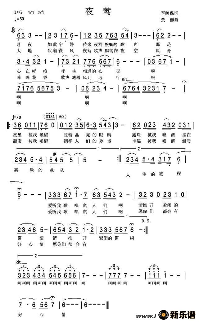 夜莺演唱的夜莺歌词,夜莺最新曲谱.