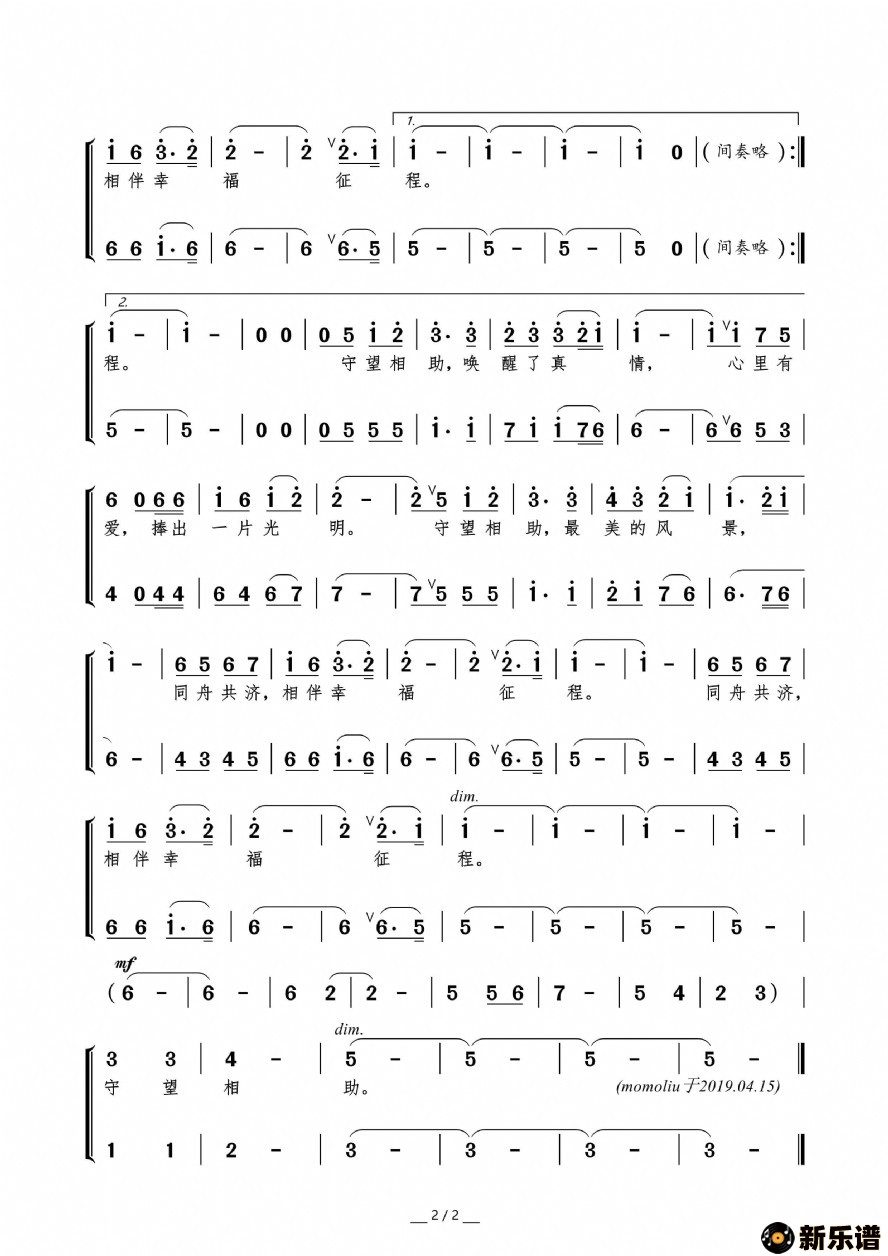 《守望相助》最新曲谱 王莉 汤非-momoliu制谱