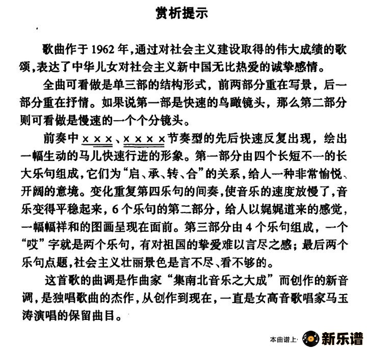 《马儿啊,你慢些走》最新曲谱 马玉涛