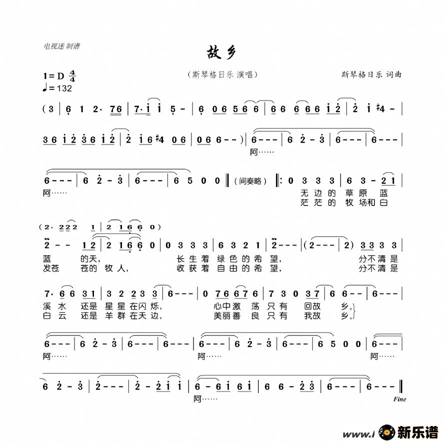 斯琴格日乐演唱的故乡歌词,故乡最新曲谱.