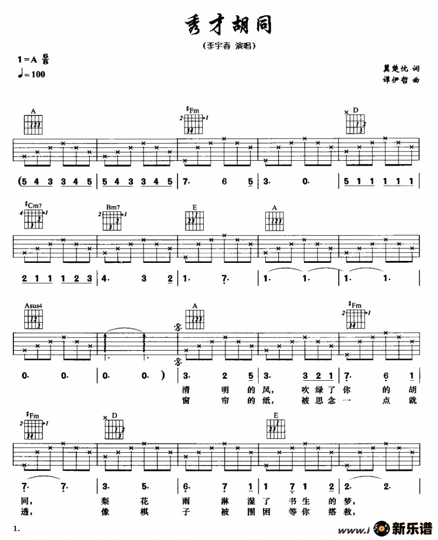 李宇春演唱的秀才胡同歌词,秀才胡同最新曲谱.