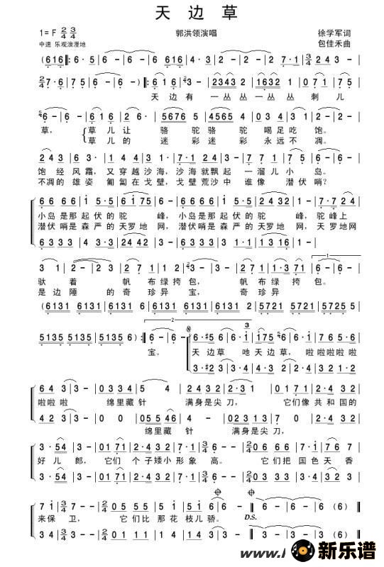 郭洪领演唱的天边草歌词,天边草最新曲谱.