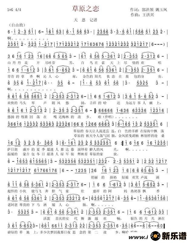 《草原之恋》最新曲谱 郭洪领-天恩制谱