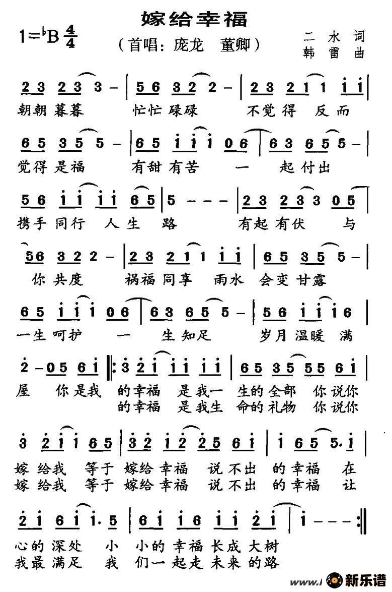 庞龙/董卿演唱的嫁给幸福歌词,嫁给幸福最新曲谱.