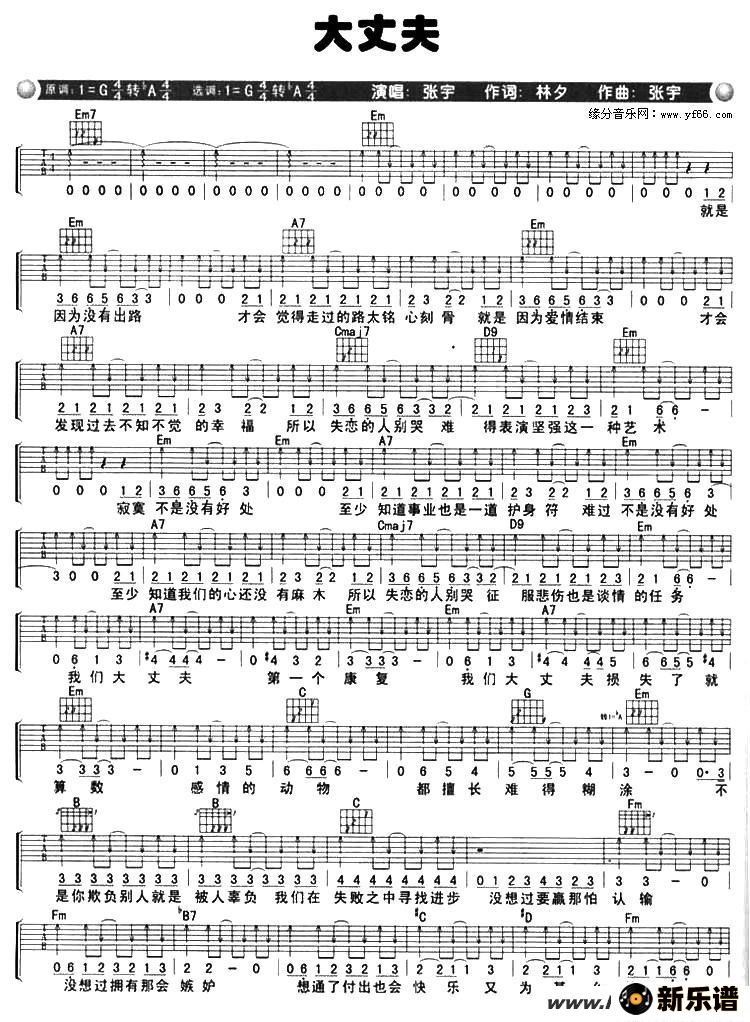 张宇演唱的大丈夫歌词,大丈夫最新曲谱.