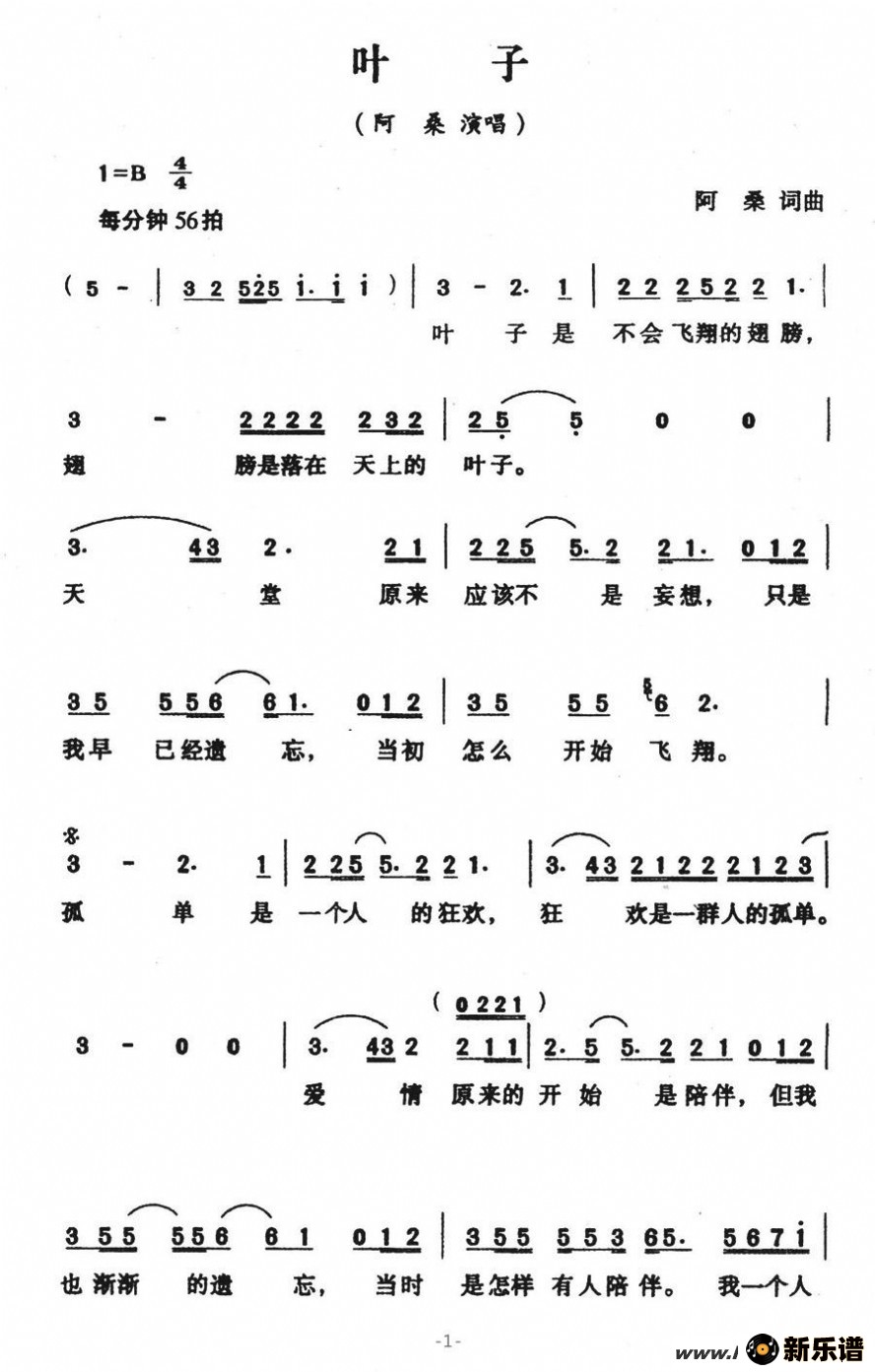 > 叶子最新曲谱