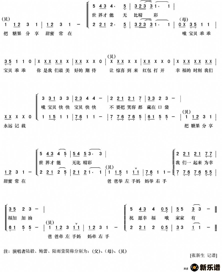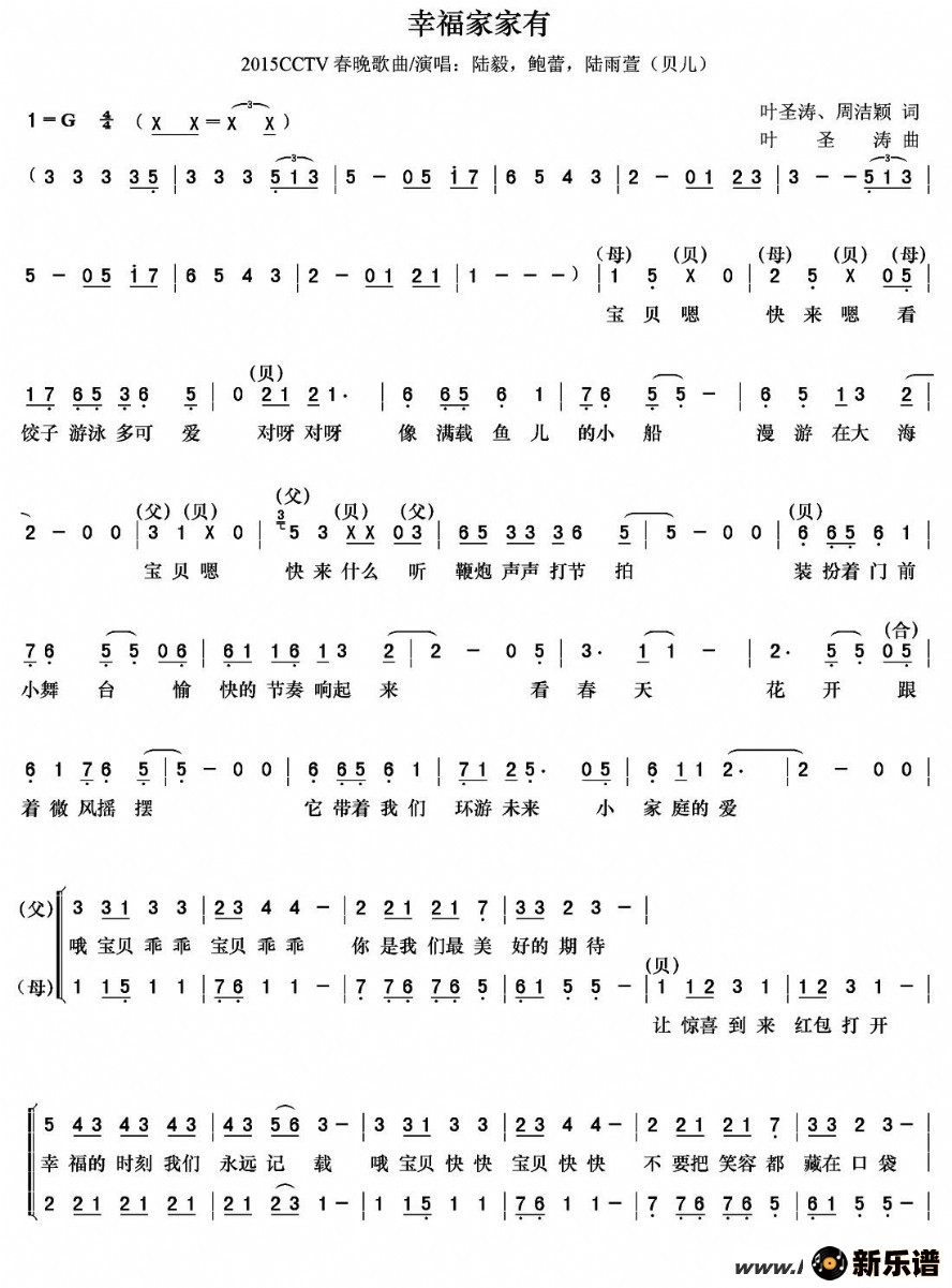 《幸福家家有》最新曲谱 陆毅/鲍蓉/贝儿
