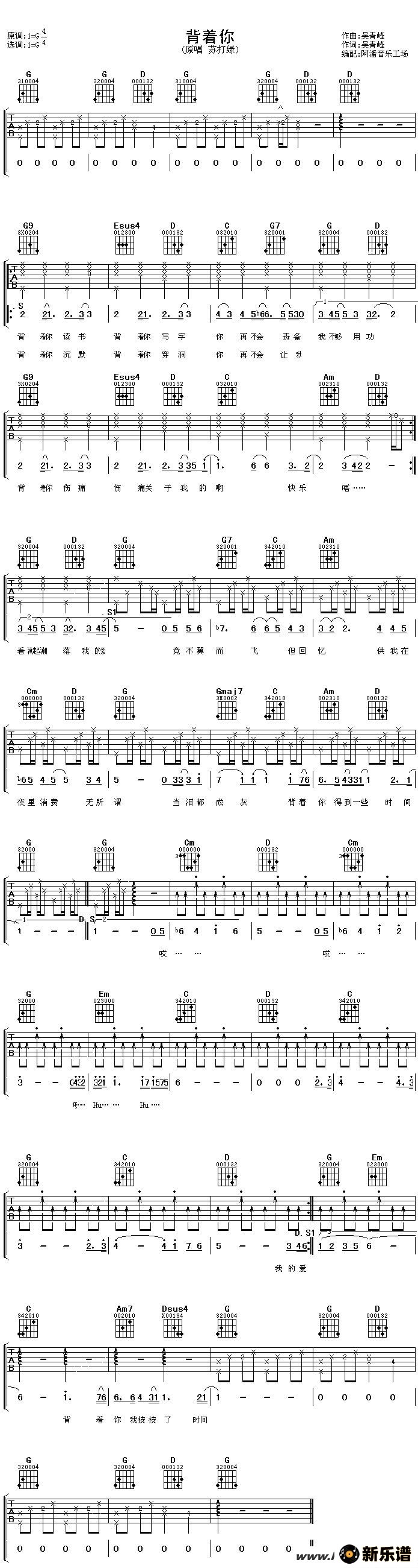 苏打绿演唱的背着你歌词,背着你最新曲谱.