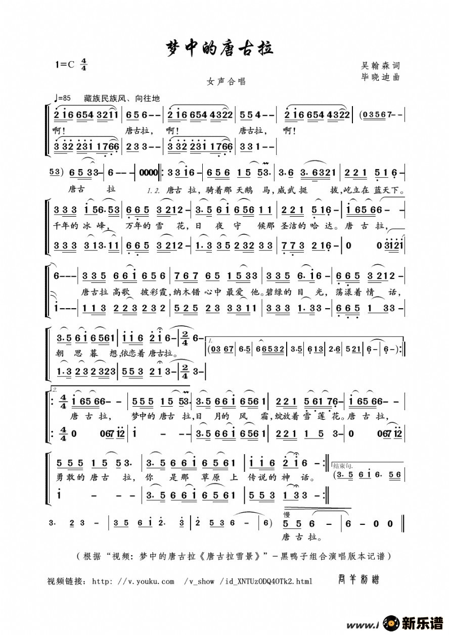 《梦中的唐古拉》最新曲谱 黑鸭子组合-君羊制谱
