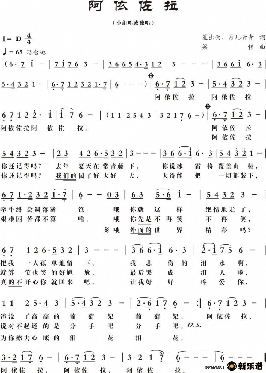 《阿依佐拉》最新曲谱 莺子