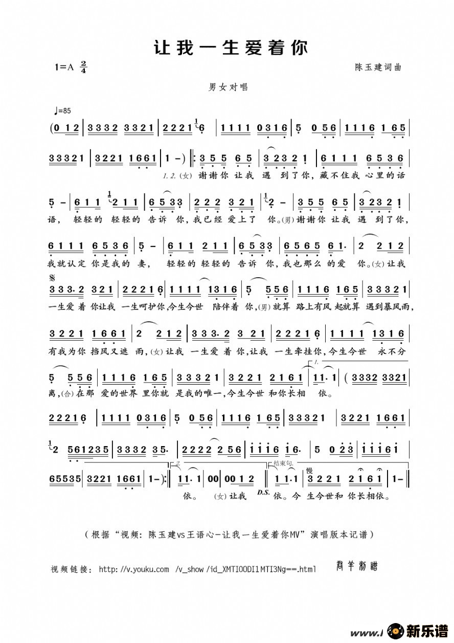 《让我一生爱着你》最新曲谱 陈玉建、王语心-君羊制谱
