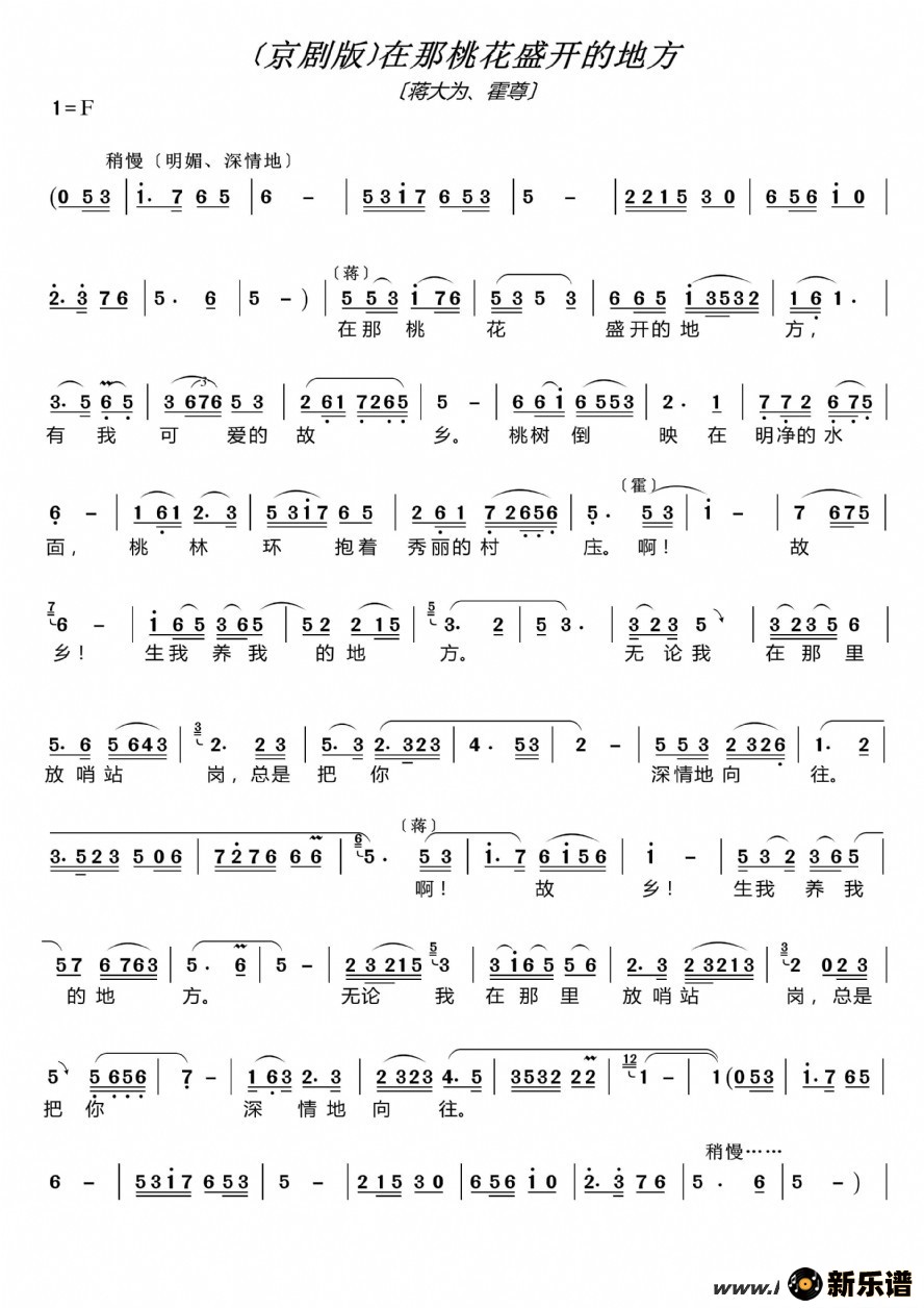 《〔京剧版〕在那桃花盛开的地方》最新曲谱 蒋大为/霍尊