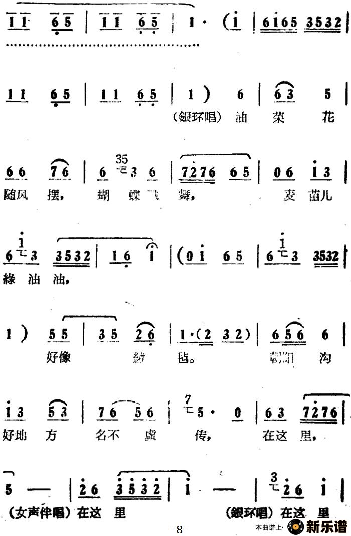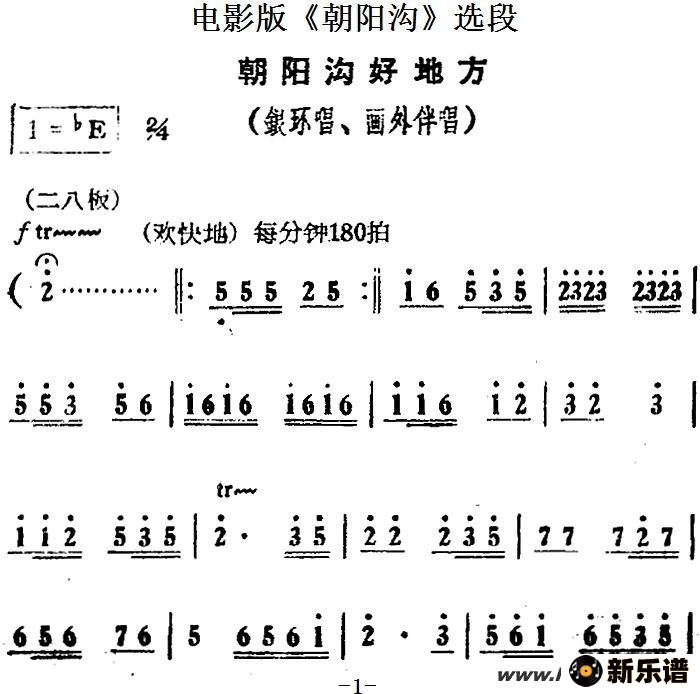 > 朝阳沟好地方(电影版《朝阳沟》选段、银环唱段、画外伴唱)最新曲谱