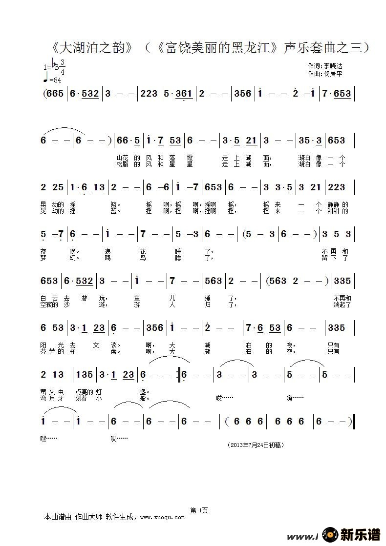 大湖泊之韵/佟居平 富饶美丽的黑龙江 相关曲谱
