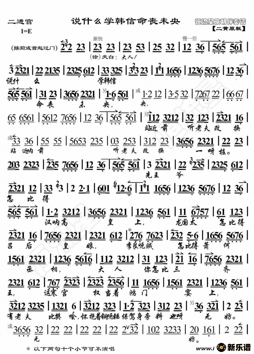 > 二进宫·说什么学韩信命丧未央最新曲谱