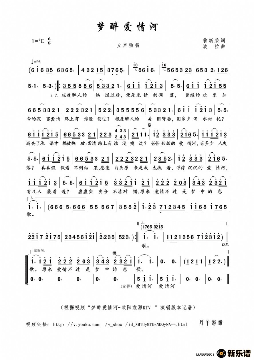 《梦醉爱情河》最新曲谱 欧阳袁源-君羊制谱