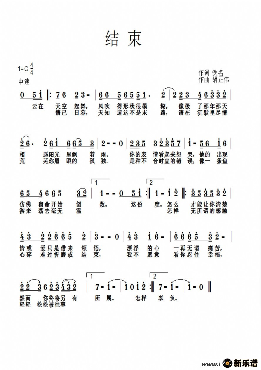 胡正伟演唱的结束歌词,结束最新曲谱.
