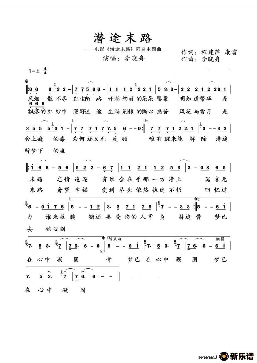 李晓舟演唱的潜途末路歌词,潜途末路最新曲谱.