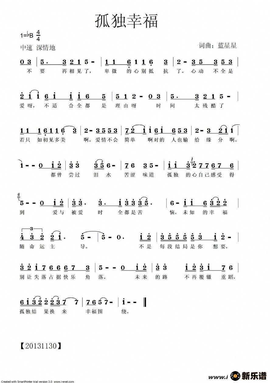 胡正伟演唱的孤独幸福歌词,孤独幸福最新曲谱.