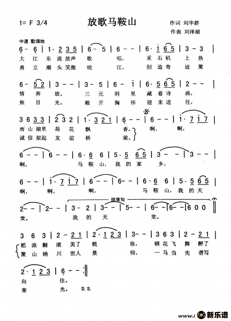 《放歌马鞍山》最新曲谱 佩芳/爱国