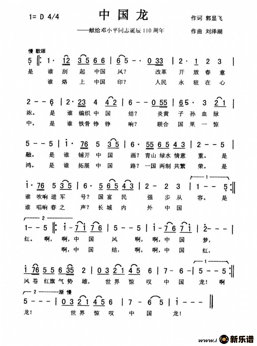 秀兰/常榕演唱的中国龙歌词,中国龙最新曲谱.