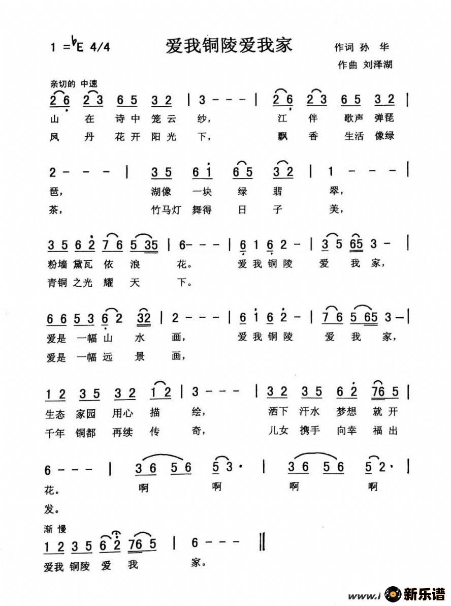 > 爱我铜陵爱我家最新曲谱