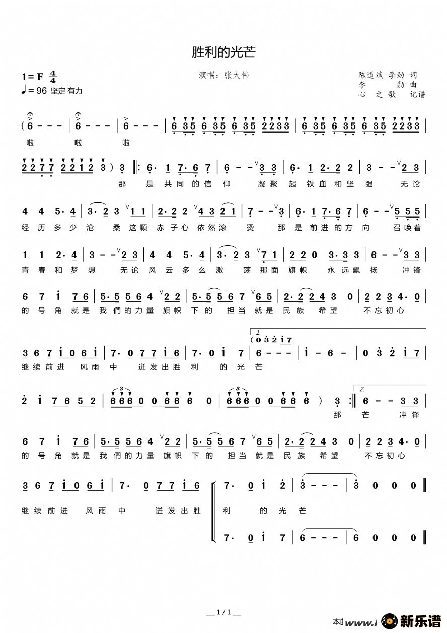 《胜利的光芒》最新曲谱 张大伟-心之歌制谱