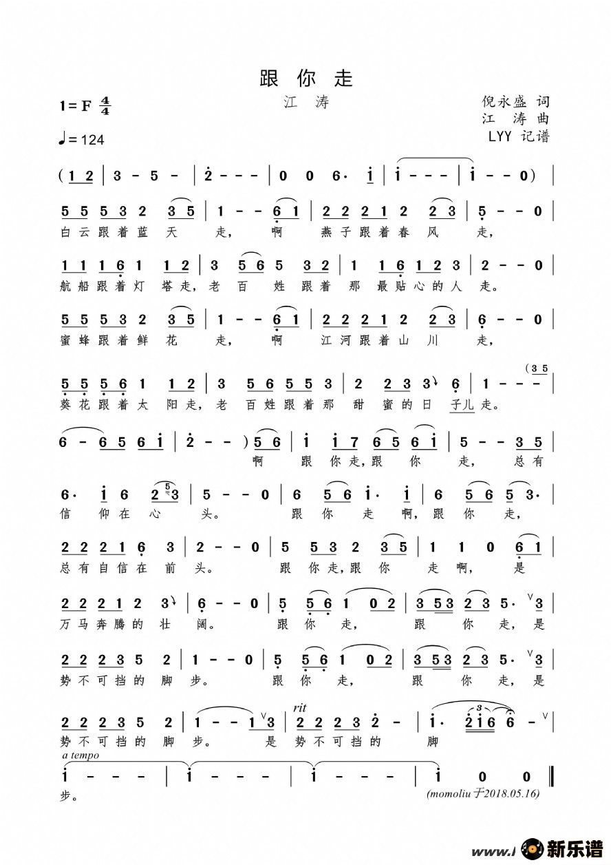 《跟你走》最新曲谱 江涛-momoliu制谱