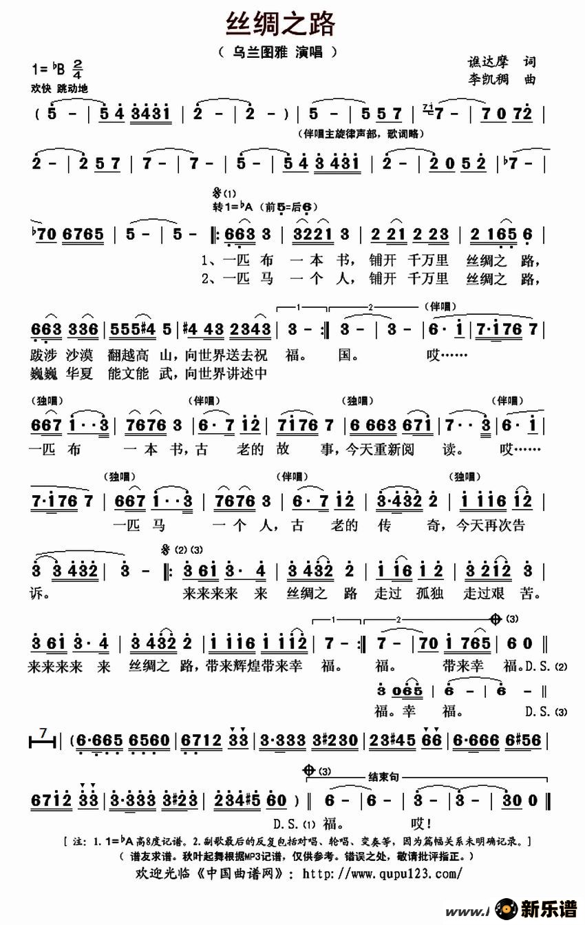 > 丝绸之路最新曲谱