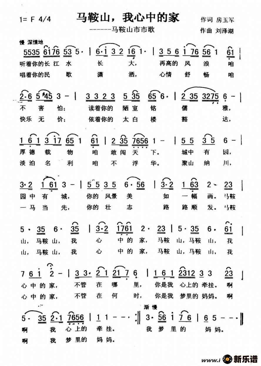 《马鞍山,我心中的家》最新曲谱 秀兰/常榕