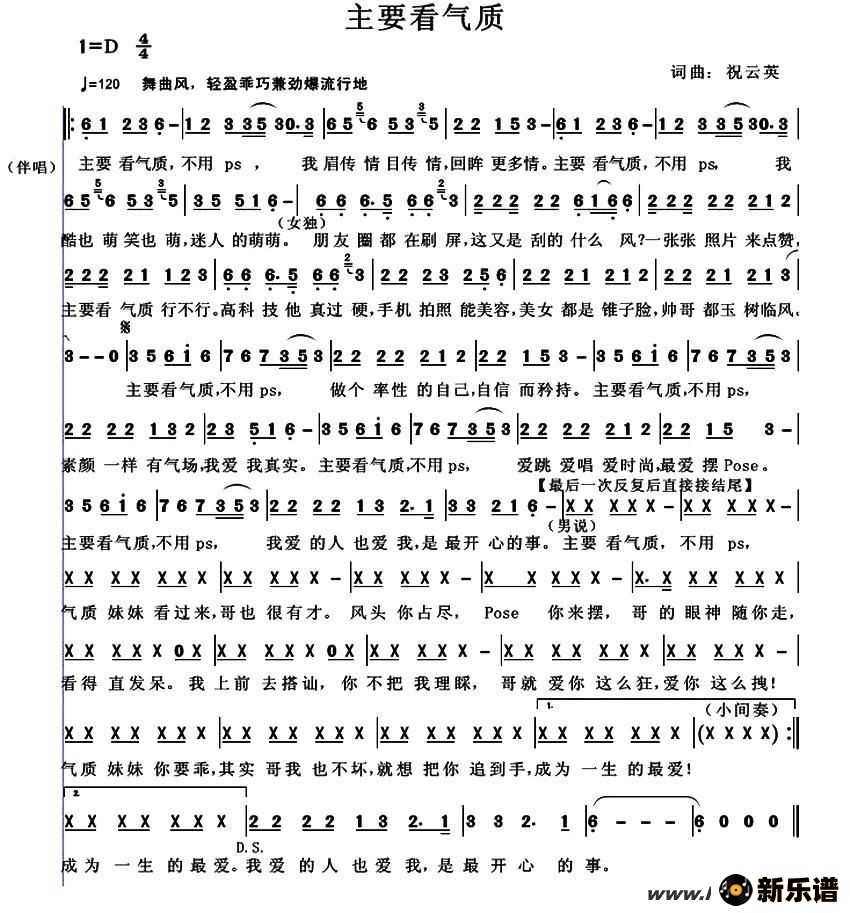 魏菲儿演唱的主要看气质歌词,主要看气质最新曲谱.