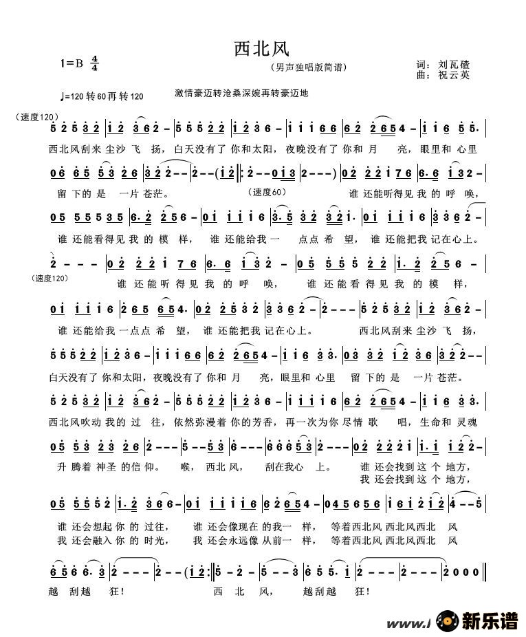 杭天琪、郭少杰演唱的西北风歌词,西北风最新曲谱.