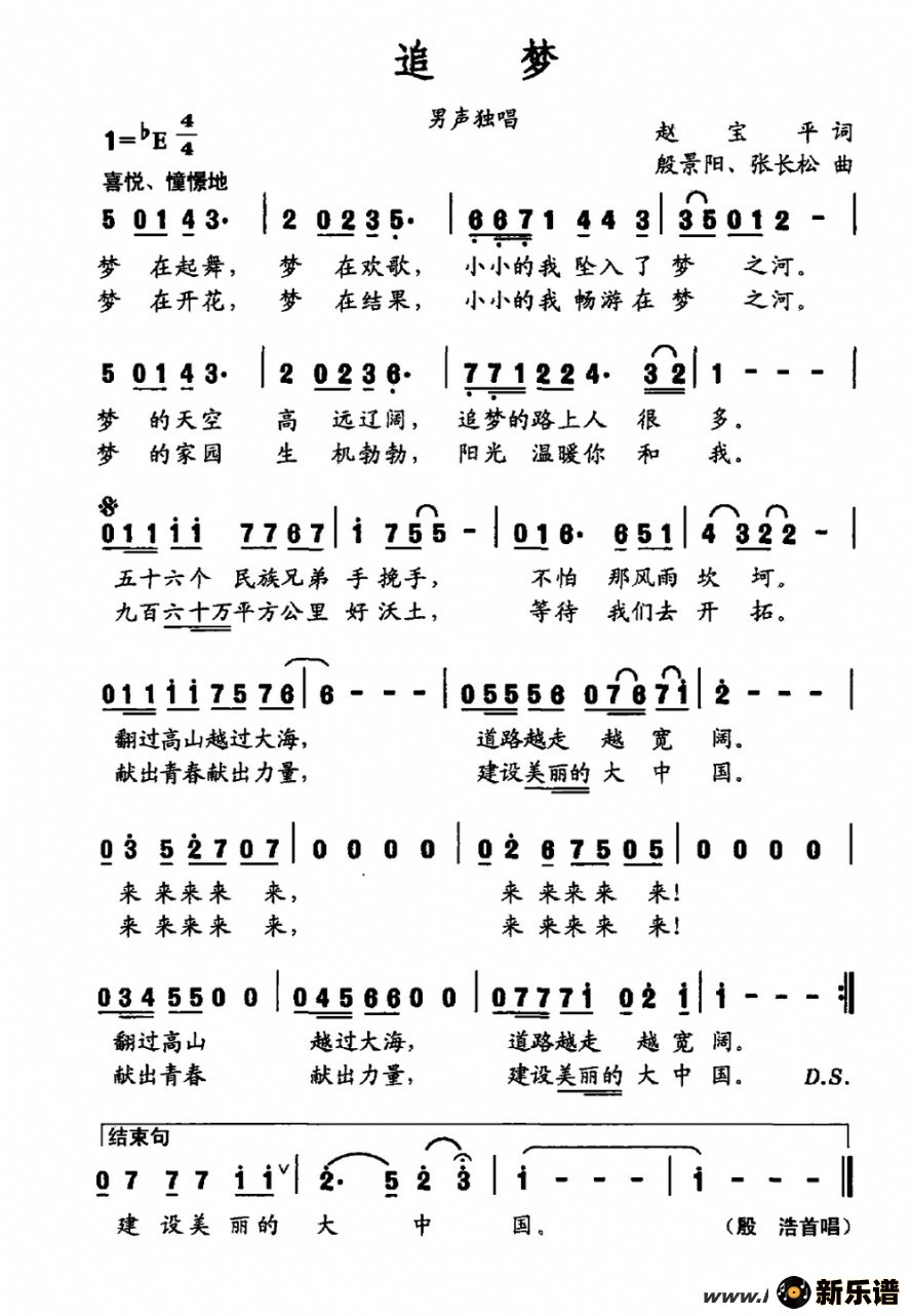 殷浩演唱的追梦歌词,追梦最新曲谱.