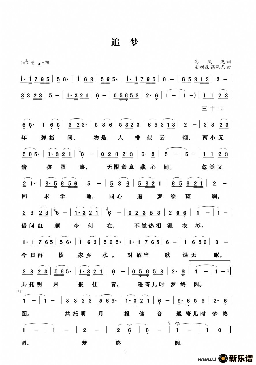 菲菲演唱的追梦歌词,追梦最新曲谱.