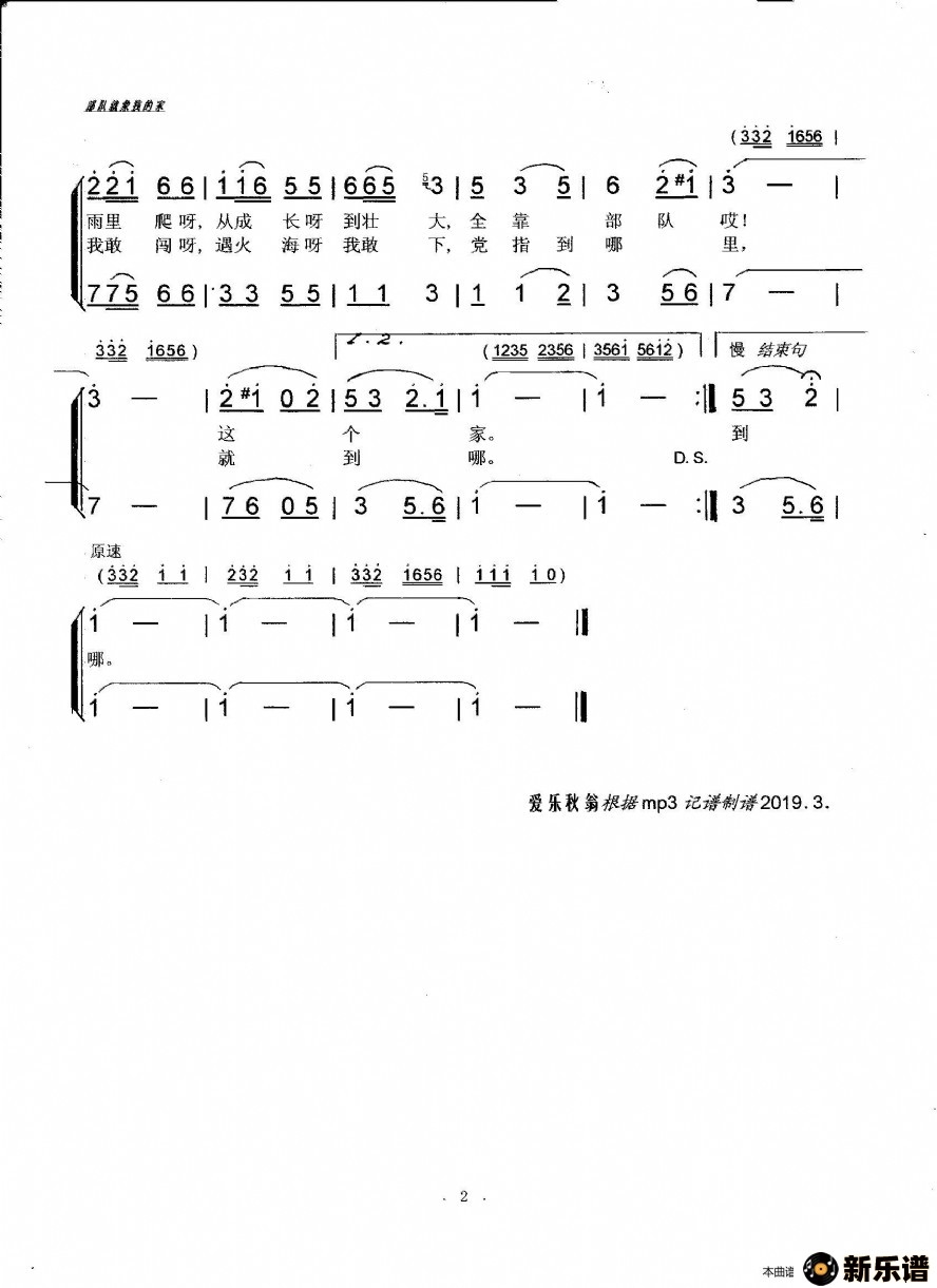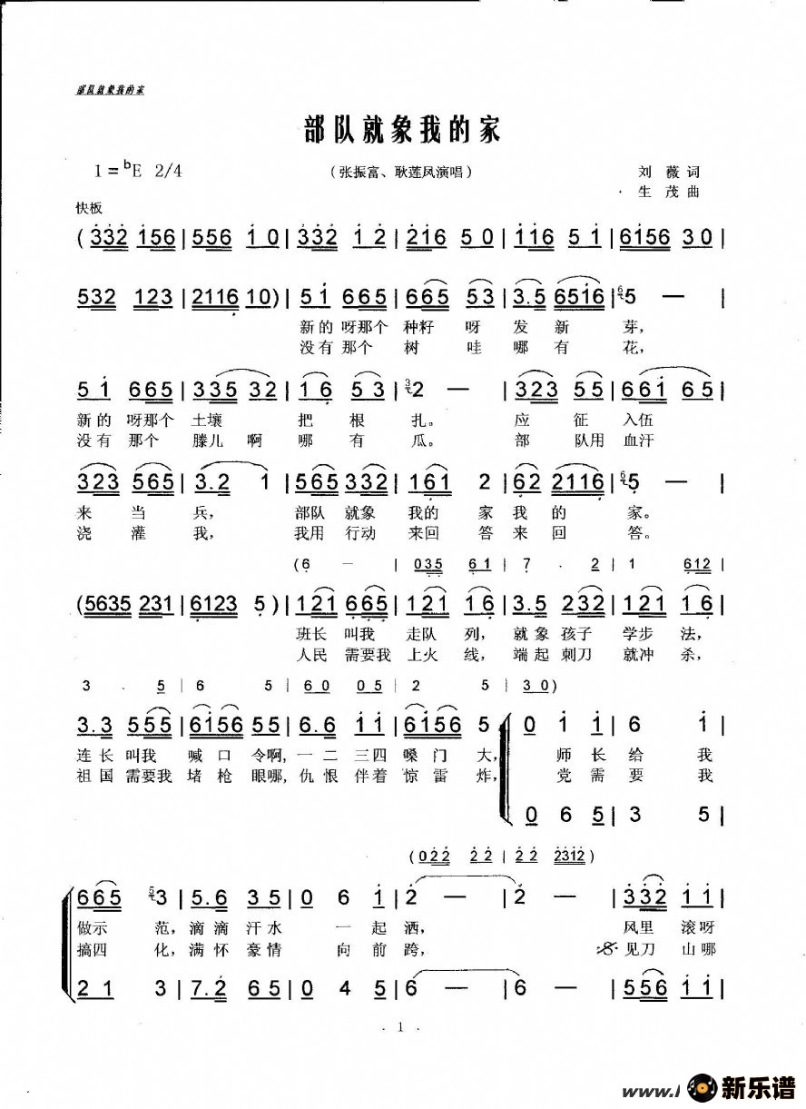 《部队就象我的家》最新曲谱 张振富、耿莲凤