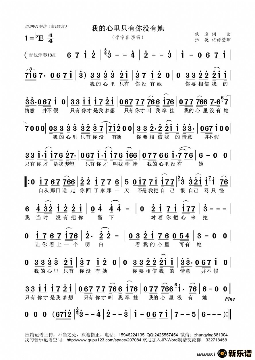 《我的心里只有你没有他》最新曲谱 红蔷薇-君羊制谱