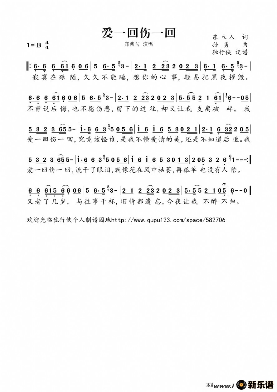 《爱一回伤一回》最新曲谱 郑茜匀-独行侠制谱