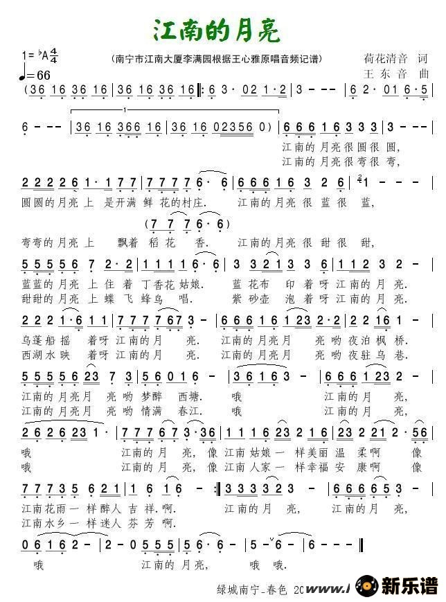 王心雅演唱的江南的月亮歌词,江南的月亮最新曲谱.