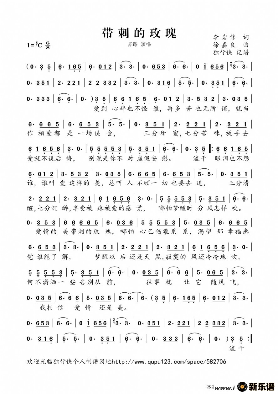 苏路演唱的带刺的玫瑰歌词,带刺的玫瑰最新曲谱.