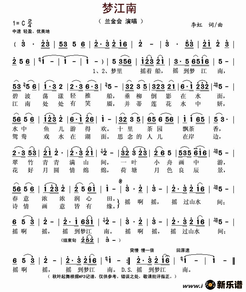 兰金会演唱的梦江南歌词,梦江南最新曲谱.
