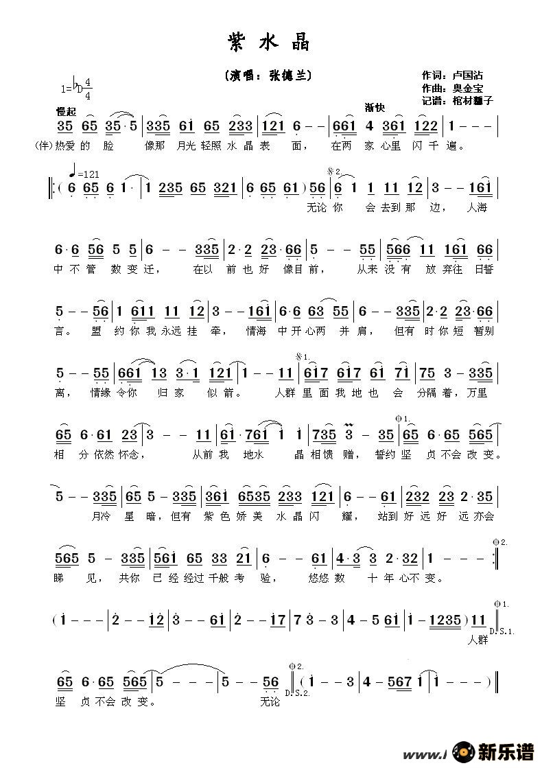张德兰演唱的紫水晶歌词,紫水晶最新曲谱.