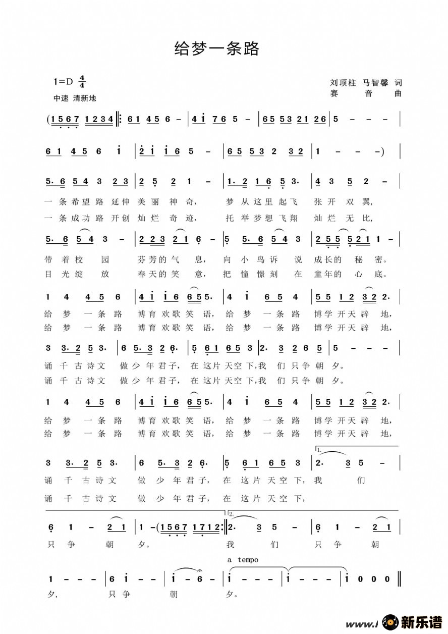 《给梦一条路》最新曲谱 少儿合唱团