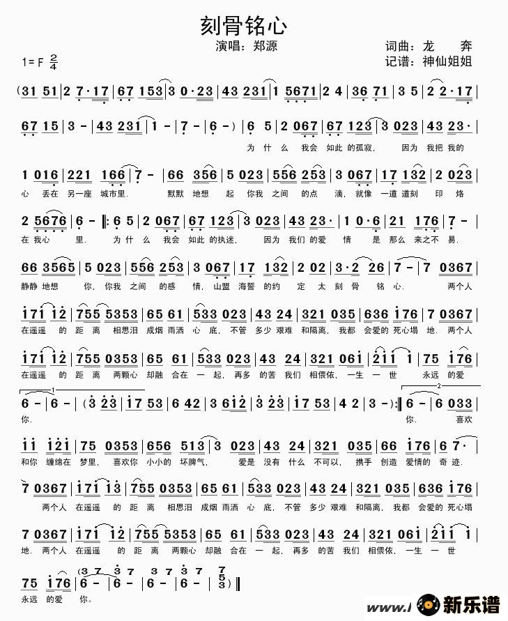 郑源演唱的刻骨铭心歌词,刻骨铭心最新曲谱.