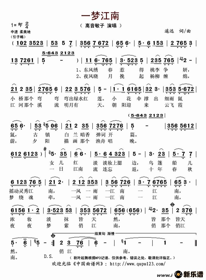 高音敏子演唱的一梦江南歌词,一梦江南最新曲谱.