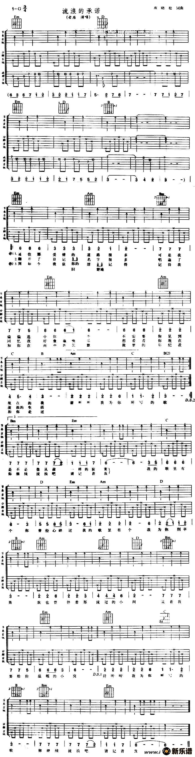 老居演唱的流浪的承诺歌词,流浪的承诺最新曲谱.