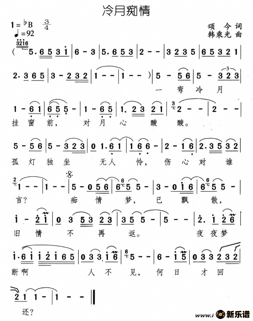 任静演唱的冷月痴情歌词,冷月痴情最新曲谱.