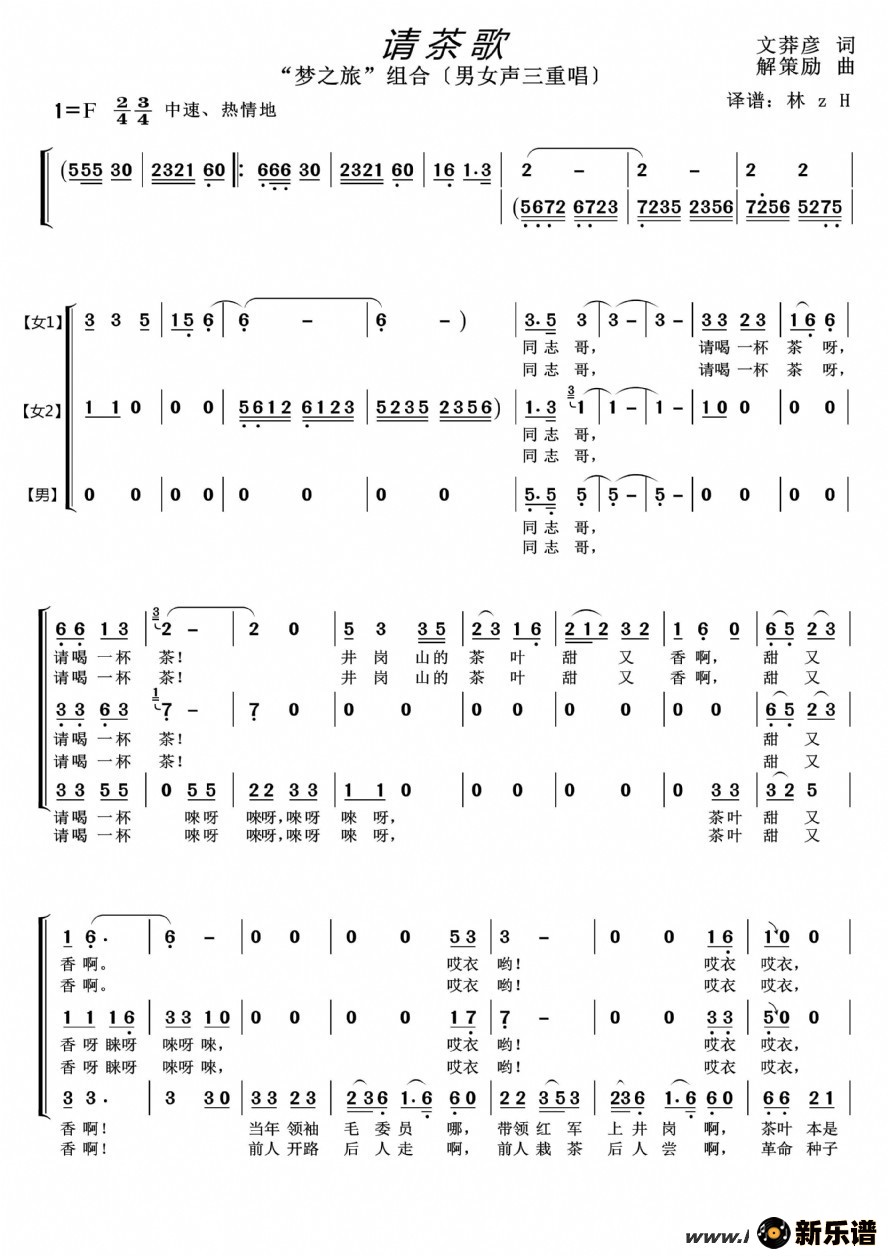 《请茶歌》最新曲谱 梦之旅